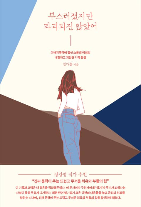 스물셋 되던 해 아빠의 폭력을 못 이겨 가해자를 경찰에 신고할 때까지 피해자가 품고 있던 질문이었다. 김가을 씨의 논픽션 『부스러졌지만 파괴되진 않았어』는 이 절박한 물음에서 시작되었지만 종국에는 묵직한 어젠다를 사회에 던진다. 우리 모두가 알지만 어떻게 분류하고 명명해야 할지 몰랐던 폭력 범죄. 훈육, 엄부(嚴父) 같은 단어 뒤에 숨기도 했던, 물리적으로 끔찍하며 여러 사람의 인생을 밑바닥부터 파괴하는 ‘아버지폭력’이다.