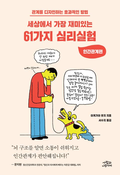 ‘뇌과학’을 도구로 인간이 지닌 가장 중요한 특성 중 하나인 ‘사회성’, 그리고 ‘인간관계’의 비밀을 밝히는 책. 『세상에서 가장 재미있는 61가지 심리실험 — 인간관계편』에는 뇌의 정체성과 작동 원리에 관한 정신의학, 뇌과학, 사회심리학, 행동경제학 분야 세계 최고 석학들과 연구팀들의 기발하고 흥미진진한 61가지 심리실험이 담겨 있다. 저자인 이케가야 유지는 도쿄대 약학대학 교수이며 최고 권위의 뇌과학자다. 실제로 이 책에는 공평함을 추구할수록 세상이 점점 더 불공평해지는 원인을 밝힌 ‘난수표를 사용한 독특한 돈거래 실험’과 인간이 자기 자신을 점점 더 높이 평가하는 이유를 규명한 ‘베터-댄-에버리지 효과실험’ 등 유지 교수의 탁월한 연구 성과도 소개된다.