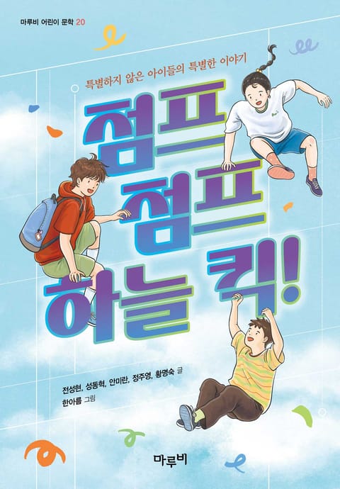 그동안 재미있고 유익한 어린이문학을 선보여 온 마루비 어린이문학 20번째 작품으로 『점프 점프 하늘 킥!』이 출간되었습니다. 이 작품은 경제적 소수층 어린이, 가족으로부터 소외된 어린이, 난민 어린이, 다문화가정 어린이, 특별한 사랑을 시작한 어린이 등 결코 특별하지 않지만 사회의 편견과 차별에 의해 특별한 일상을 살고 있는 다섯 아이들의 이야기를 다룬 엔솔로지 형식의 동화입니다. 그동안 개성 넘치는 작품 활동으로 저마다 두터운 독자층을 확보하고 있는 5명의 작가들에 의해 탄생한 『점프 점프 하늘 킥!』을 통해 우리가 잘 몰랐던 하지만 늘 함께 해온 친구들의 삶을 이해하고 포용함으로써 장차 우리 어린이들이 살아갈 이 사회가 지금과는 한층 더 다양하고 성숙한 사회가 되길 바랍니다.