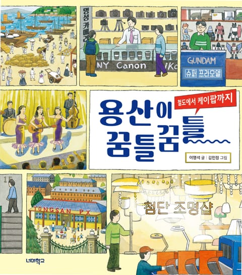 우리나라 최초의 기차역과 첫 대단지 아파트가 세워진 곳, 외국 대사관이 가장 많이 있는 곳은? 바로 용산이다. 『철도에서 케이팝까지 용산이 꿈틀꿈틀』은 외국 군대가 오래 주둔했으나 케이팝이 태어나고 자란 곳, 세계 문화가 공존하며 새로움을 만들어 낸 용산의 역사를 따스하고도 생생한 그림, 명쾌하고 리듬감 있는 글로 보여 주는 그림책이다.