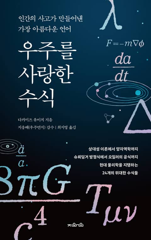 『우주를 사랑한 수식』은 영국 케임브리지대학교 이론우주론 센터에서 스티븐 호킹의 마지막 제자로 활동한 저자가 들려주는 흥미로운 24개의 강의로 이루어진 책이다. 인간이 만들었지만 신의 언어로 불리는 수식의 세계. 이 책의 감수를 맡은 과학 커뮤니케이터 지웅배의 말처럼 “수식 없이 물리학을 설명한다는 것은, 근본적으로 모순이다. 음악을 음표 하나 없이 말로만 이해한다고 상상해보라”. 그간 여느 과학 교양서들이 애써 피해온 수식의 세계로 우리를 정면으로 초대하는 책. 수학과 물리학의 세계를 동경하는 이들, 우주의 신비에 가슴 뛰는 이들이라면 반드시 손에 쥐게 될 책이다.