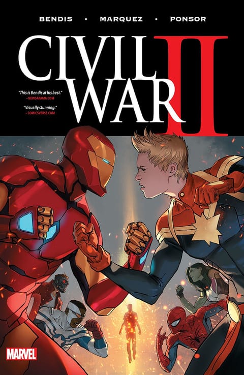 어벤저스, 엑스맨, 인휴먼즈, 스파이더맨, 가디언즈 오브 더 갤럭시를 비롯한 수많은 영웅들이 각각 캡틴 마블과 아이언 맨을 선택하여 진영을 나눈다. 끝내 위대한 히어로 한 명이 쓰러졌을 때, 마블 유니버스는 또다시 전쟁의 길로 접어드는데…. 미래를 위한 싸움 끝에는 정말 구할 가치가 있는 미래가 남을 것인가?
