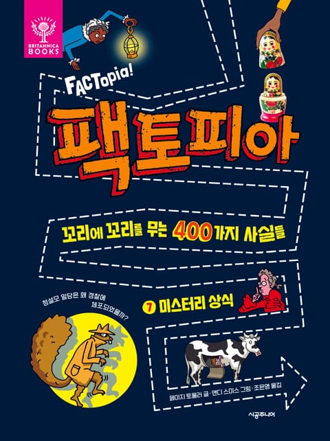 『팩토피아』에서는 동물과 식물, 스포츠, 역사, 엽기, 과학 등 흥미로운 400가지 사실들이 점선 길을 따라 이어진다. 사진과 삽화가 절묘하게 조합된 통통 튀는 이미지, ‘예상치 못한’ 사실들은 읽는 내내 즐거움을 선사한다. 무엇보다 오랜 역사와 권위를 자랑하는 브리태니커의 검증을 거쳤다는 점, 초등 교과와 연계된 내용이 담겼다는 점에서 믿을 만하다. 점선 길을 따라 눈이 가는 대로 읽어도 좋고, 샛길을 따라 모험하듯 읽어도 좋다. 각 권마다 제공되는 워크북으로 다양한 유형의 퀴즈를 풀다 보면 집중력과 이해력이 높아진다. 읽는 재미, 보는 재미, 상상하는 재미에 답을 맞히는 재미까지 더하며 적극적인 독서를 끌어내는 것이 이 책의 가장 큰 장점이다. 팩토피아의 일곱 번째 주제는 ‘미스터리 상식’이다. 변장에 능한 스파이부터 베일에 싸여 있는 고대 도시, 여전히 잡히지 않은 전설의 도둑까지 세상 곳곳에 숨어 있는 이야기들이 색다른 재미를 선사한다. 호기심이 이끄는 대로 조심스레 미스터리의 뒤를 밟아 보자.