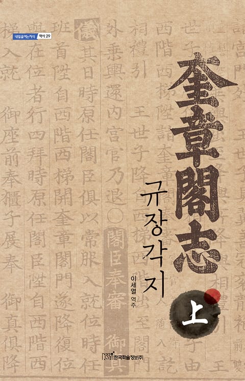 규장각의 연혁과 직제, 관규, 제도, 의식 등을 정리한 『규장각지』 번역본 상권. 국립중앙도서관 소장본 갑진신편 내각활자 영인본에 근거해 번역한 책이다. 규장각 내각과 강화도에 둔 외규장각, 부설 인쇄소인 교서관등의 설치 연혁과 건물 및 관원 구성 등을 밝히고, 내각에는 봉모당ㆍ열고관ㆍ개유와ㆍ이안각ㆍ서고 등의 서고에 대한 설명도 첨부하였다.