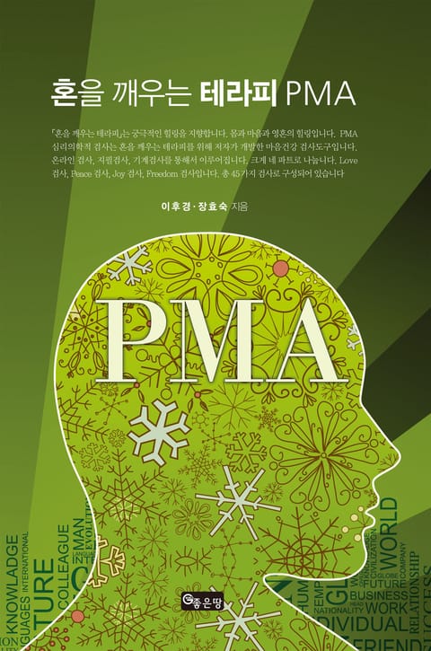 ‘혼을 깨우는 테라피’는 궁극적인 힐링을 지향합니다. 몸과 마음과 영혼의 힐링입니다. ‘PMA 심리의학적 평가’는 혼을 깨우는 테라피를 위해 저자가 개발한 마음건강 검사도구입니다.