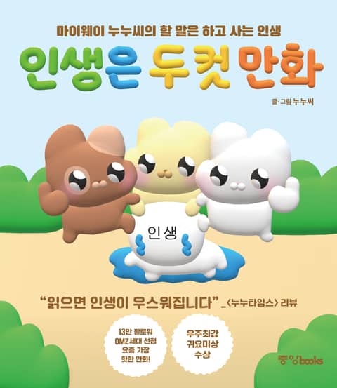 인생의 고민들을 귀여우면서도 속 시원하게 해결해주는 책! ‘그림판’ 하나로 13만 팔로워를 사로잡으며 단숨에 Z세대가 픽한 만화로 떠오른 누누씨의 첫 단행본 『인생은 두 컷 만화』는 귀여운 캐릭터와 작가 특유의 재치 있는 입담을 가볍게 만나볼 수 있는 유쾌한 책으로, 읽다 보면 끙끙 앓고 있던 고민도 그저 웃어넘길 수 있는 책이다.