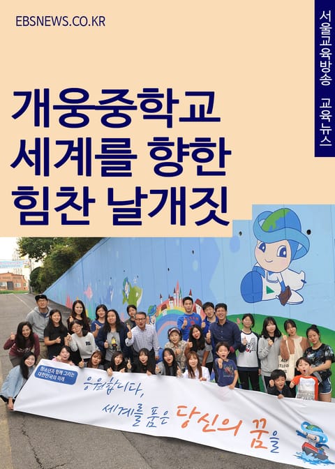 해당 도서는 학교 현장소식을 전하는 서울교육방송 보도 뉴스이다. 이원숙 개웅중학교 학교장은 “어둡고 낡은 그림이 자리하고 있는 교문에서 학교 건물까지 50m의 높고 긴 벽을 학생들이 밝고 희망찬 꿈을 키우며 등교하는 희망의 길로 만들고자 방법을 찾는 중에 대한무역투자진흥공사(코트라 KOTRA)의 지원으로 ‘청소년과 함께 그리는 대한민국의 미래’ 벽화 그리기를 실시하게 되어 매우 기쁘게 생각한다.”고 말했다.