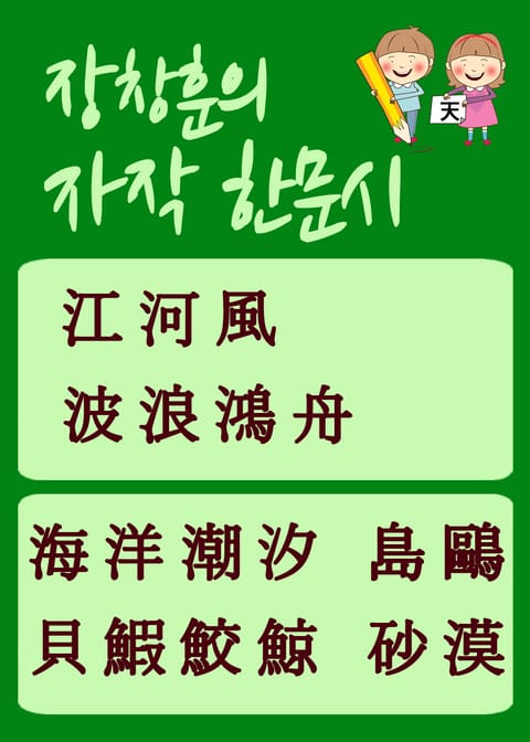 해당 도서는 장창훈 시인의 자작 한문시 1편과 작가노트이다. 쉽게 한문을 익힐 수 있도록 생활한자를 의미로 연결해 만든 한문시이다.