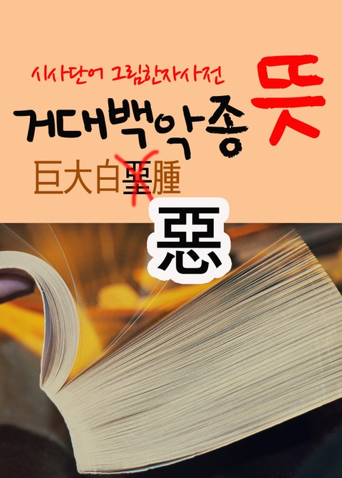 해당 도서는 시사단어 ‘거대백악종’의 한문뜻을 쉽게 풀이한 그림한자사전이다. 백악(白堊)은 백악관(白堊館)과 한자가 같다. 백악관은 하얀 페인트로 칠해진 곳이다. 백악(白堊)은 흰 시멘트를 뜻한다. 백(白)은 햇빛의 색깔이 희다는 뜻이며, 堊은 뭉개진 흙의 색깔이 흰색이라는 뜻이다. 흙이 꼭 황토는 아니다. 하얀 색깔의 흙도 있다. 堊이 흰 흙이다. 거대백악종에서 ‘악(堊)’을 ‘악(惡)’으로 바꿔야하지 않을까싶다. 惡은 굽은 마음이다. 亞은 위아래가 짓눌려서 작아진 모습으로, 곱사등을 뜻한다. 惡은 굽어진 마음으로, ‘악함’ ‘미움’이다. 거대백악종 사건은 거대한 흰색 ‘악함’이 드러난 사건이라고 할 것이다.