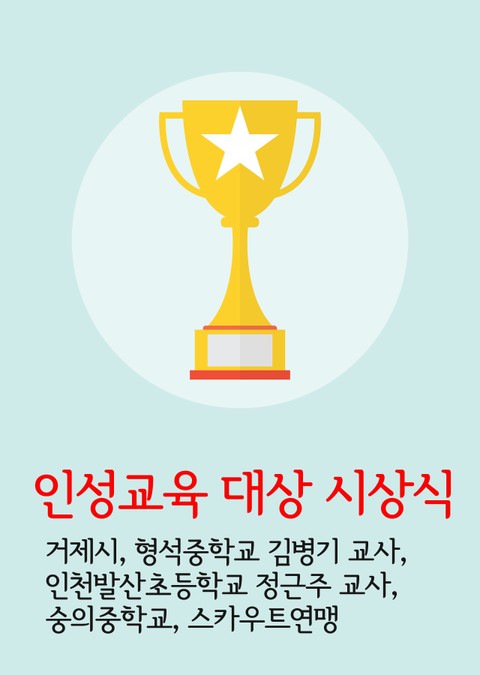 인성교육 대상 시상식 (거제시, 형석중학교 김병기 교사, 인천발산초등학교 정근주 교사, 숭의중학교, 스카우트연맹) 상세페이지
