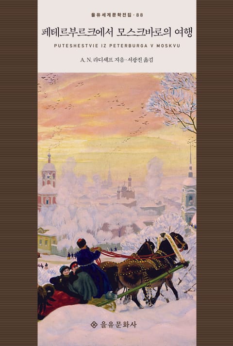 ‘혁명의 예언자이자 선구자’로 평가받는 라디셰프의 대표작 『페테르부르크에서 모스크바로의 여행』이 을유문화사 세계문학전집 88번째 작품으로 출간되었다. 이 책은 18세기 러시아 사회의 모순과 혁명 의식이 발아되는 상황을 생생히 담고 있는 역작으로, 문학의 사회적 역할이 어떠해야 하는지를 잘 보여 주는 작품으로 평가받는다. 19세기의 위대한 망명 지식인이었던 게르첸은 이 작품을 ‘거대한 고발장’이라고 칭하기도 했다. 또한 이 작품을 접한 예카테리나 2세는 작가에게 사형을 언도할 정도로 당시 러시아 사회를 뒤흔든 문제작이다.