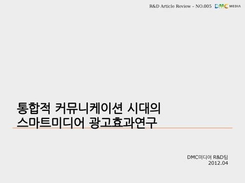 통합적 커뮤니케이션 시대의 스마트미디어 광고효과 연구