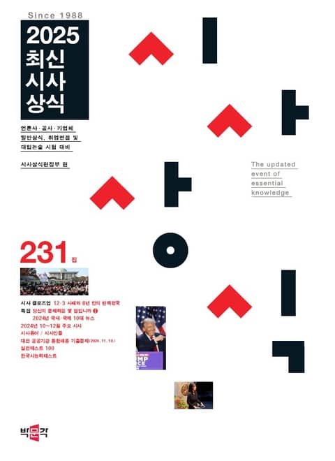 <231집 최신시사상식>은 공공기업·언론사·일반 기업체 입사를 앞둔 취업 준비생, 공무원 시험이나 대입 면접을 앞둔 수험생, 평소에 상식능력 함양에 관심을 가지고 있는 독자들을 위한 수험서 및 자기계발서입니다.