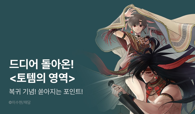 • -EVENT 1) 이벤트 기간 한정, 연재 웹툰 <토템의 영역> 완전판/개정판을 대여가 100원에 감상하실 수 있습니다.