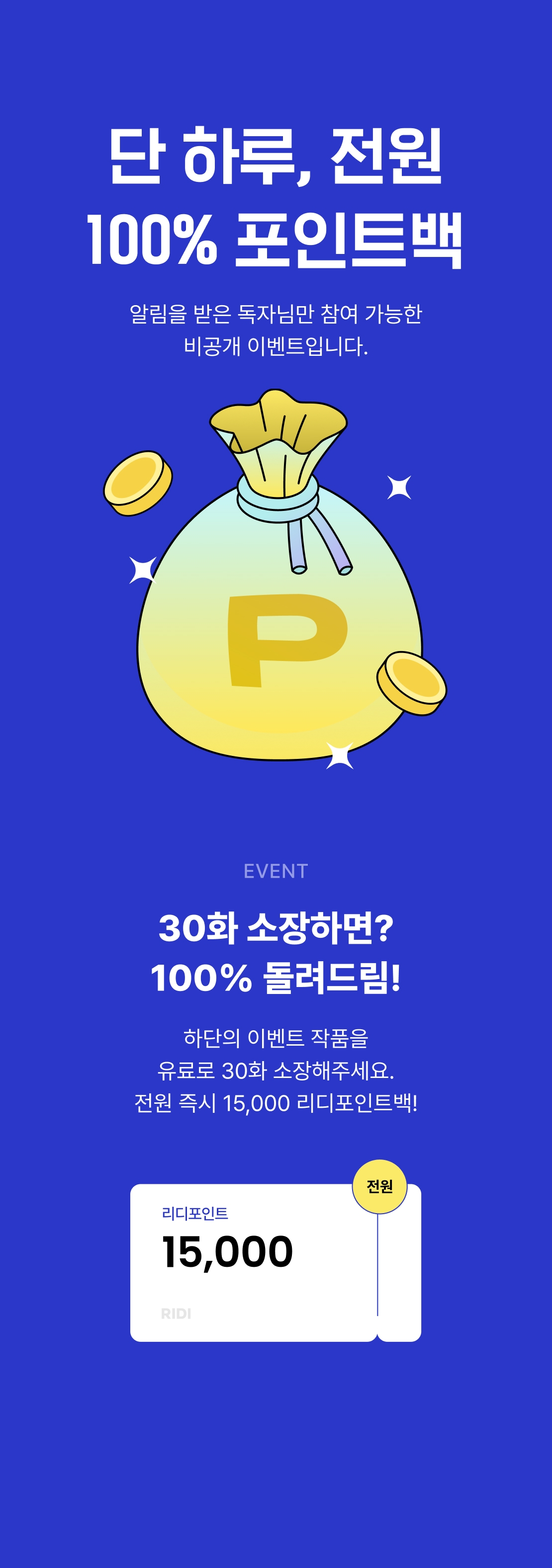 • 부정한 방법으로 응모하여 포인트를 지급 받을 시, 이후 리디에서 진행하는 모든 이벤트의 당첨 대상에서 제외됩니다.