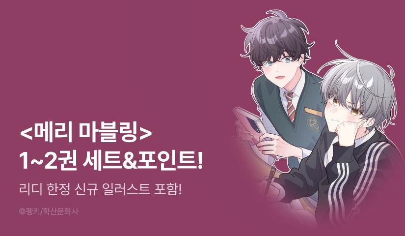 - - 리디를 통해 <[특별세트] 메리 마블링 1~2권>을 다운로드 후, 리디 웹 또는 앱 세트 도서 홈에 리뷰를 남겨 주세요.