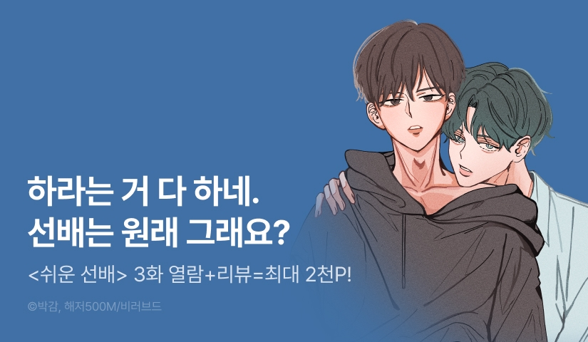 - ①이벤트 기간 동안 <쉬운 선배> 웹툰을 3화 이상 유료로 열람(소장/대여)