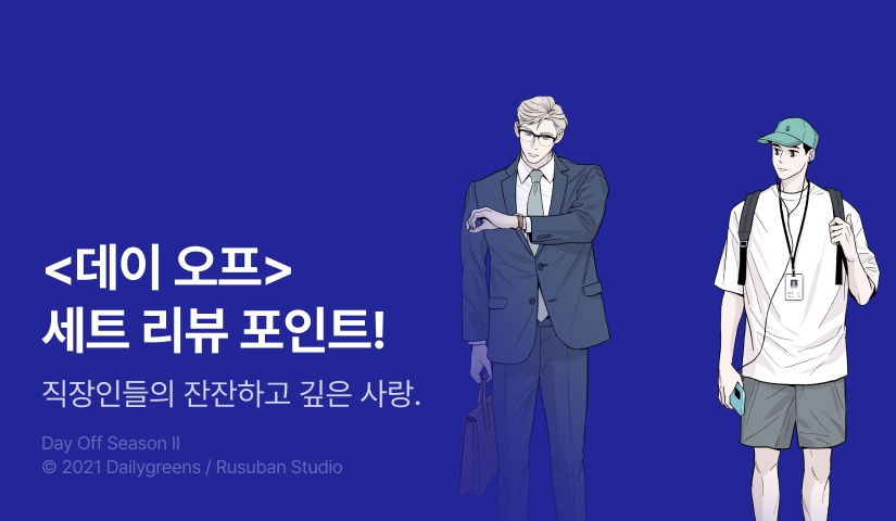 - -리디를 통해 <[특별세트] Day Off (데이오프)(시즌1~2)> 를 다운로드 혹은 구매확정 후 리디 웹 또는 앱 세트 도서 홈에 리뷰를 남겨 주세요.