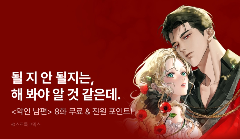- -EVENT 5) 이벤트 기간 동안 웹툰 <악인 남편>를 1~8화까지 무료로 감상하실 수 있습니다.