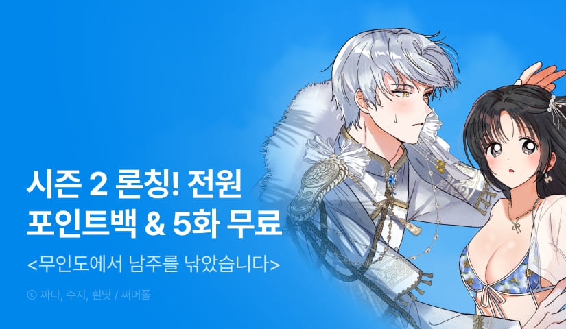 - -EVENT 1) 웹툰 시즌 2의 연재 재개 회차(완전판 기준 34~36화 / 개정판 기준 30~32화)중 유료로 1화 이상 감상 시, 1인 1회에 한해 즉시 포인트를 드립니다.