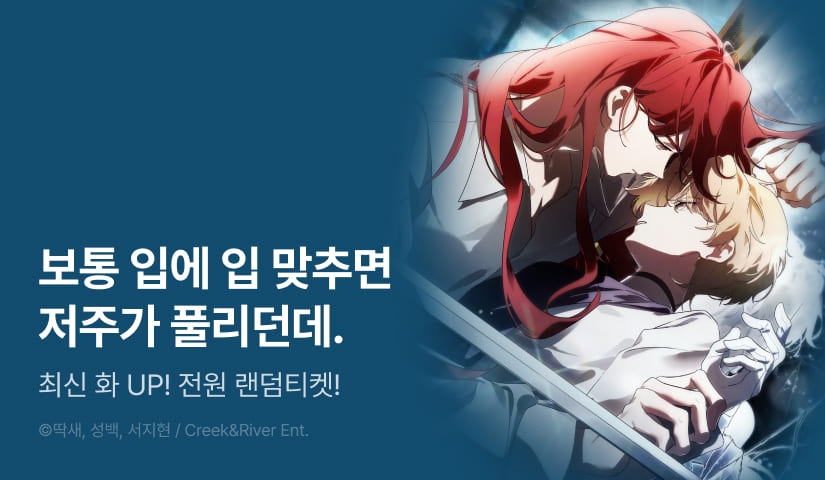• -EVENT 1) 웹툰 <완벽한 저주의 나쁜 예> 최신 화(23화)를 유료(대여/소장)로 감상하거나 결제내역에서 구매 확정하신 모든 분들께 1인 1회에 한해 전원 즉시 랜덤 티켓을 드립니다.