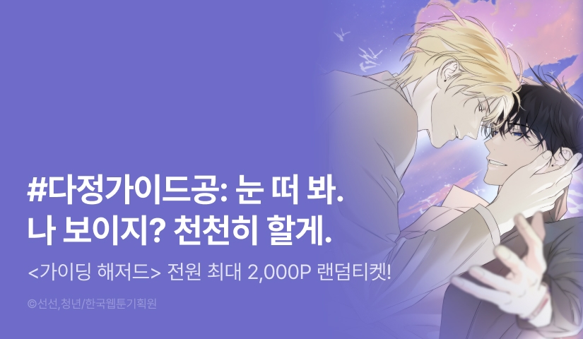 • 이벤트 기간 동안 <가이딩 해저드> 웹툰을 3화 이상 유료로 열람(소장/대여)