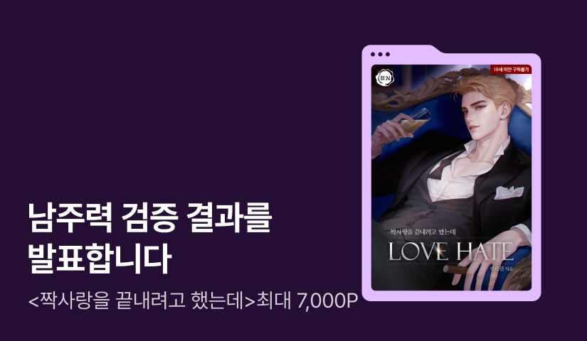 • -이벤트 기간 <짝사랑을 끝내려고 했는데(LOVE-HATE)> 19세 이용가 작품을 3시간마다 1화 무료로 이용하실 수 있습니다.