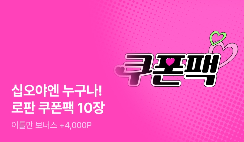 • -๋กœํŒ ์ฟ ํฐํŒฉ ํ• ์ธ์ฟ ํฐ์€ ์ด 10์žฅ์œผ๋กœ, ์ด๋ฒคํŠธ ๊ธฐ๊ฐ„ 1์ธ 1ํšŒ ๋ฐœ๊ธ‰ ๋ฐ ์‚ฌ์šฉ ๊ฐ€๋Šฅํ•ฉ๋‹ˆ๋‹ค.
