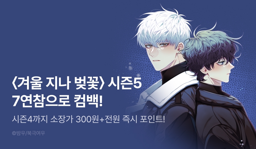 • 리디를 통하여 <겨울 지나 벚꽃> 웹툰 5화 이상 유료 결제(대여/소장)