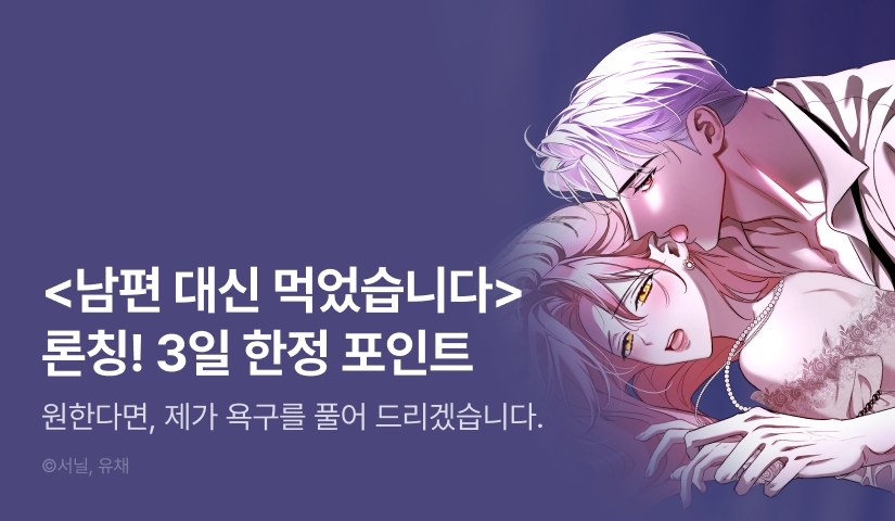 • -3일 한정) 웹툰 <남편 대신 먹었습니다 (완전판/개정판)>을 1화 이상 유료(대여/소장)로 감상하거나 결제내역에서 구매 확정한 후 리뷰를 남겨주신 모든 분들께 포인트를 드립니다.